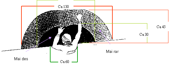 Zona de lucru recomandata pentru un lucrator care lucreaza in pozitie sezanda este cea marcata cu negru in figura de mai jos: