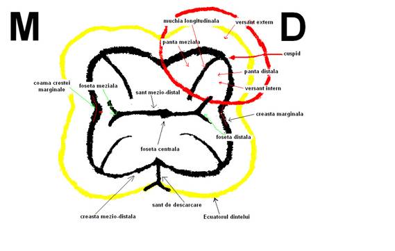 - se uneste si se continua cu cele 2 creste marginale proximale ale fetei ocluzale.