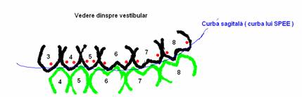 Curbura sagitala (curba lui Spee) prin care se intelege linia ce se formeaza prin unirea vf cuspizilor V in plan sagital.