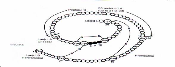 Structura biochimica a insulinei in reprezentare bidimensionala