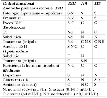 pentru TSH, o stimulare a sintezei tiroidiene si diminuarea nivelului de