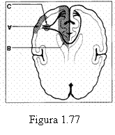 Leziunea in girusul supramarginal stang (A) produce apraxie bilaterala care este asociata cu afazie datorita prinderii fascicului arcuat (B). Lezuinea in lobul frontal stang (C) produce apraxia membrelor drepte in timp ce leziunea fibrelor care merg spre lobul frontal drept produce apraxia membrelor stangi.