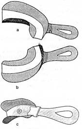 Portamprente partiale pentru amprente segmentare: a) pentru hemiarcada stanga maxilara si dreapta mandibulara;b) pentru hemiarcada dreapta maxilara si stanga mandibulara;