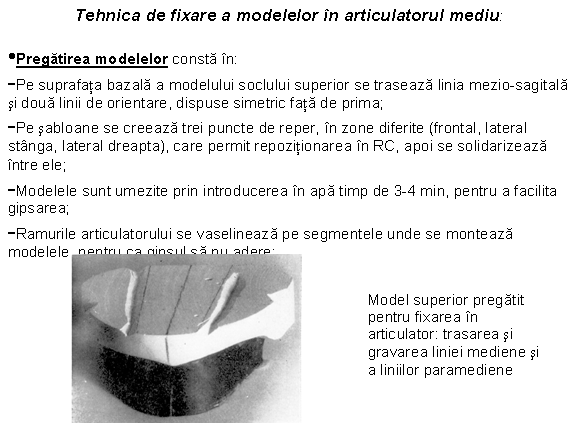 bordurilor, este plasat in planul orizontal al mesei; planul meziosagital al modelelor sa se