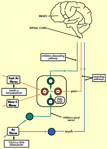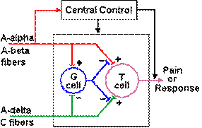 Melzack si Wall (1965) au elaborat teoria portii cu privire la mecanismul de transmitere a durerii. Conform acestei teorii in fiecare corn dorsal medular exista un mecanism de tip poarta, prin care se inhiba sau se faciliteaza fluxul impulsurilor aferente prin maduva, inainte de a se genera senzatia de durere si raspunsul specific la nivel central. Conform teoriei, deschiderea sau inchiderea portii (transmiterea sau nu a informatiei dureroase) este dependenta de activarea fibrelor de diametru mare, care nu transmit durerea, Aβ (presiune, stimuli termici, tactili si electrici, proprioceptie) sau a celor de diametru mic, care transmit durerea, Aδ si C si este mediata prin neuronii intercalari din substanta gelatinoasa. Hiperactivarea fibrelor de diametru mare este responsabila de inchiderea portii (stoparea transmiterii prin activarea neuronilor intercalari), iar cea a fibrelor de diametru mic este responsabila de deschiderea portii (facilitarea transmiterii prin inhibarea neuronilor intercalari). Astfel, accesul la sistemul nervos central este reglat prin intermediul acestei porti, care este deschisa de impulsuri dureroase si inchisa de stimuli slabi, de alta natura (frecare, masaj, stimulare electrica usoara). Ex. lovirea degetului determina transmiterea impulsului prin poarta, care este deschisa, iar masarea usoara a zonei determina reducerea durerii prin inchiderea portii.
