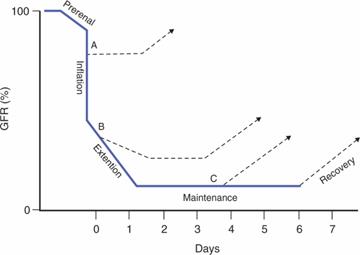 La sfarsit este faza de recuperare, in care GFR se imbunatateste pe masura ce functia celulara si renala revine la normal.