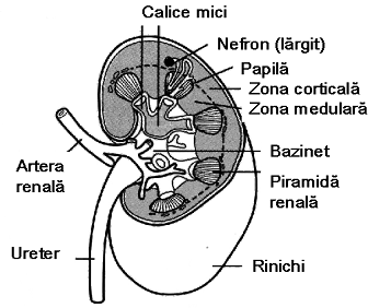 Bazinetul prezinta calicele mici calicele mari ; se continua cu ureterul vezica urinara - ⇒ mari; ⇒