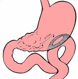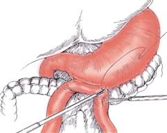 Fig. 1 - Amplasarea GEA pe fata posterioara a stomacului la cel putin 6-7 cm de procesul tumoral (1)