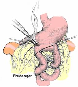 Fig. 10 - Fixarea primei anse jejunale cu doua fire de reper la marea curbura (5)