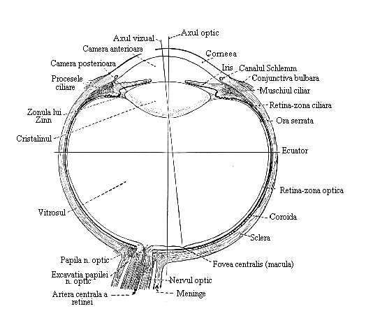 Ecuatorul este circumferinta cea mai mare a globului ocular si imparte globul in doua jumatati (emisfere).