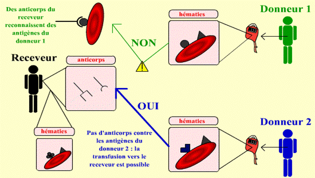REGULA TRANSFUZIEI cere ca aglutinogenul din sangele donatorului sa nu se intalneasca cu aglutininele din plasma primitorului.