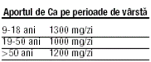 - aport adecvat de calciu (pentru adult 1000 mg/zi, peste 50 ani 1200 mg/zi).