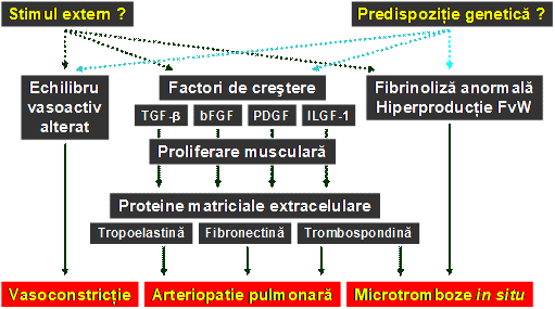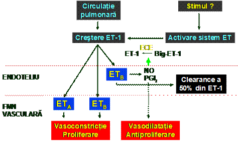 Hiperproductie endoteliala de ET-1 si proliferare de receptori ETA vasoconstrictori (stimul ?)