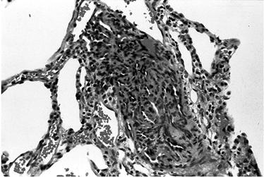 Capilarele pulmonare sunt intens congestionate (din cauza obliterarii venelor post-capilare) cu spatiul interstitial edematiat si vasele limfatice mult dilatate (leziuni care pot produce frecvent microhemoragii alveolare si/sau interstitiale)