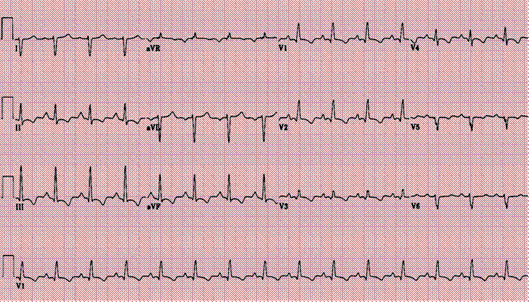 ECG: semne de suprasolicitare AD (P 'pulmonar') si VD (unde R ample in V1 cu R/S > 1)