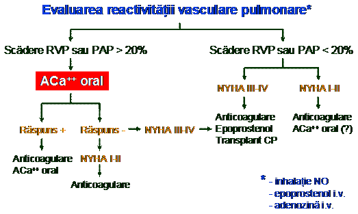 Verapamil - bun vasodilatator arterial pulmonar dar cu cel mai puternic efect inotrop negativ dintre ACCa (risc de decompensare hemodinamica a VD)
