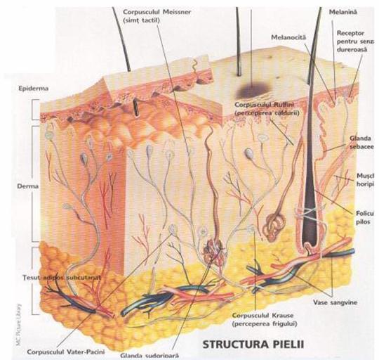 . Functia exteroceptoare este reprezentata de numerosi receptori cutanati, care pe caile de conducere ,transmit la centrii nervosi .Pielea constituie un organ unitar ,integrat in metabolismul general al organismului .