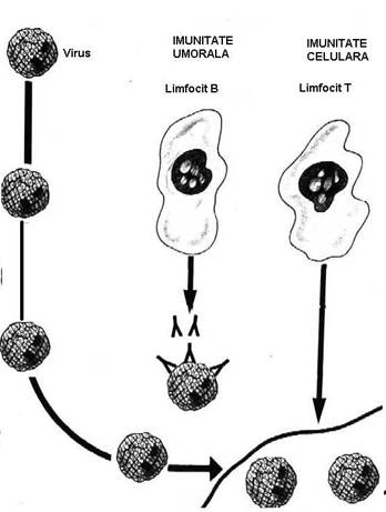 Raspunsul organismului gazda este si el foarte divers implicand toate componentele nespecifice ale apararii, dar cu o nuanta proprie (Fig.25): cu preponderenta imunitatii celulare legata de dezvoltarea intracelulara a virusurilor si relativa ineficienta a raspunsului umoral.
