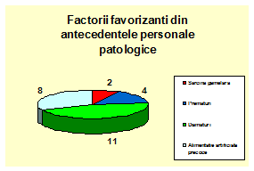 a. Factori favorizanti din antecedentele personale fiziologice: copiii proveniti din sarcini gemelare, nasteri premature, travaliu prelungit, feti cu greutate mica la nastere sau in cazul unei alimentatii artificiale precoce (inainte de 4 luni post partum) (tabelul III).