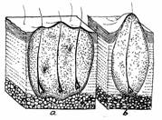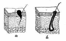 - necroza foliculului pilo-sebaceu infectat cu stafilococ, la o slabire a apararii locale si generale