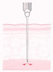 INFECTIA: se produce la pacientii imunodeprimati (diabet, tratament citostatic, casexie) cand germenii patrund prin dezinfectie insuficienta sau prin solutie contaminate. Cel mai frecvent cu stafilococul auriu. Chiar prin dezinfectie atenta, s-a stability ca in epiderm exista germeni si ca uneori fragmente de tesut sunt luate de bizoul acului. Perforarea pielii se previne prin intinderea foarte buna a pielii in zona respectiva.