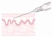 la introducerea unor cantitati mai mari de 0,5 ml se mentine acul in tesut inca 5 secunde dupa injectare pentru a impiedica refularea substantei in canalul de punctie.