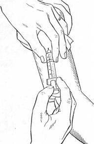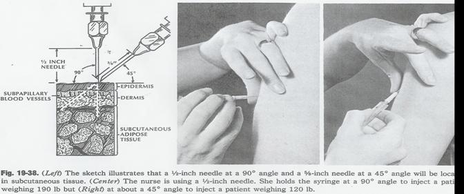 se patrunde prin tegument dealungul axului longitudinal al cutei, in profunzimea stratului subcutanat la I adancime de 2-4 cm. Se verifica daca acul nu a ajuns intr-un vas (aspirand). Tendinda de a renunta la aspiratie, intr-o zona slab vascularizata.