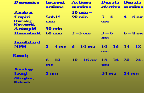 insulinele ,,Rapide'' i.v.; i.m.; s.c.