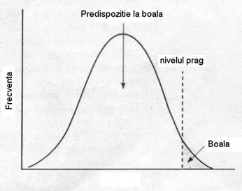 1.Toti factorii predispozanti pentru o boala, genetici si de mediu, realizeaza susceptibilitatea la boala, cand sunt considerati la un loc. Susceptibilitatea prezinta o distributie normala in populatie.