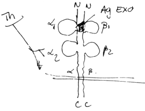 indepartarea capatului aminoterminal elibereaza situsul combinativ pentru antigen, care poate fixa diverse antigene (e.g. antigene exogene din procesele de fagocitare in endozomi)