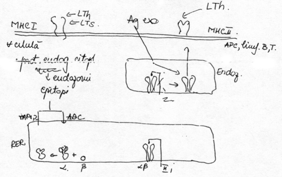 Mecanismele prezentarii selective a antigenelor pe moleculele MHC: desi ambele categorii de molecule MHC sunt sintetizate in acelasi subsector celular (RER), ele prezinta diferentiat antigenele pentru ca se cupleaza cu acestea in subsectoare celulare diferite.