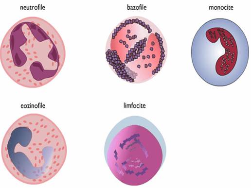 polinucleare sau granulocite ( neutrofile 60-70%, eozinofile1-3%,bazofile0,5-1%).