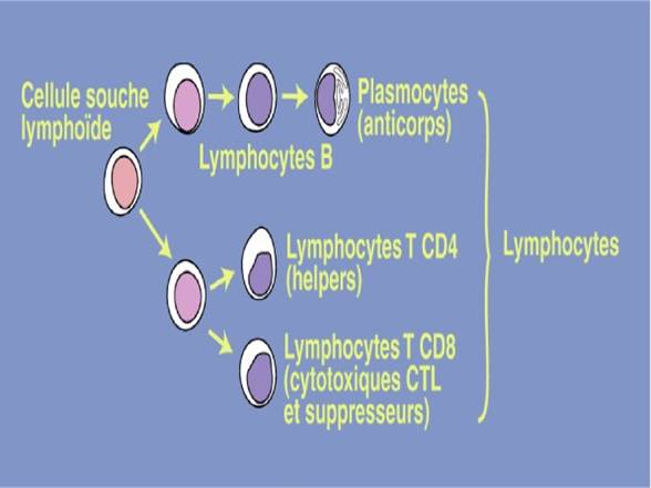 Toate limfocitele se dezvolta dintr-o celula cap de serie mica, celula stem unipotenta limfopoetica. Dupa formare, o parte din limfocite se fixeaza in timus, altele in maduva hematogena ( organ omolog cu bursa limfatica prezenta la embrionul de pasari ). Aici are loc un proces de diferentiere si specializare a limfocitelor.