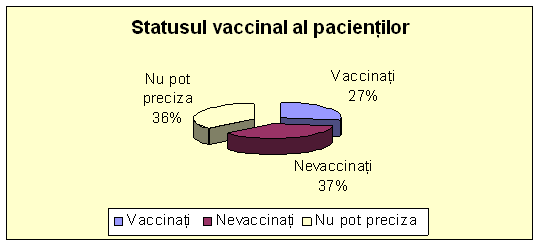 In incercarea de a investiga antecedentele patologice si cele legate de vaccinari, am intampinat o dificultate legata de faptul ca majoritatea copiilor nu poate da informatii certe despre istoricul lor medical. Obervam astfel utilitatea pe care ar avea-o intocmirea si completarea de rutina a unor carnete de sanatate si de vaccinare, care sa insoteasca de fiecare data pacientul atunci cand acesta se prezinta la medic. In acest fel diagnosticul precum si orientarea asupra patologiei din partea medicului ar fi mult mai facila, mai eficienta si mai sigura.