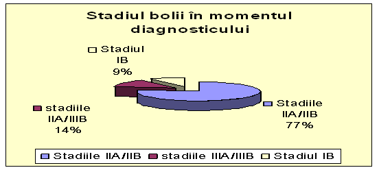 - din cele 22 de cazuri care s-au prezentat in Clinica, diagnosticul i-a surprins pe 17 dintre ei in stadiile IIA/ IIB de boala;