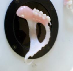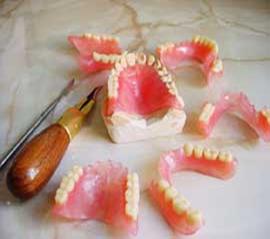La protezele cu dinti frontali este suficienta doar priza mecanica dintre dintele acrilic si baza protezei.