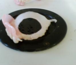 pe model cu ajutorul unui creion. In locul crosetelor din sarma elastica se modeleaza doua crosete din
