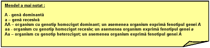 Din experimentele efectuate de Gregor Mendel, au reiesit urmatoarele notiuni ce sunt in buna parte valabile si astazi :