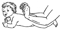 Dupa aceste miscari introductive, copilul nu se va speria daca-l ve-ti intoarce pe burta si-i ve-ti masa spatele (vezi desenele 13, 14). Ba chiar dimpotriva, el va fi dornic sa-l atingeti si se va bucura de asta. Dupa acesta intoarceti-ll cu fata in sus si incepeti sa-i masati usor abdomenul in sensul mersului acului de ceasornic. Apoi puteti sa-l intoarceti pe o parte si pe alta, bucurandu-va impreuna cu el pentru fiecare efort facut. Mai intoarceti-l inca o data pe burta pentru a-l face sa inceapa niste miscari de tarare si sustineti-l prin cuvinte incurajatoare (vezi desenul 11). Terminati exercitiile cu aceleasi mangaieri ca si la inceput, bucurandu-va impreuna de lucrul pe care l-ati reusit.
