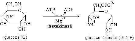 Hexokinaza (HK) este activa in toate celulele si are afinitate mare pentru glucoza (Km=0,01mM). Prezinta mai multe izoenzime si poate fosforila si alte oze: fructoza, manoza. Nivelul crescut al glucozo-6-fosfatului (G-6-P) inhiba activitatea hexokinazei.
