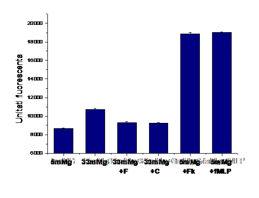 Activitatea NADPH oxidazei in omogenate celulare a fost determinata printr-o metoda chemiluminescenta descrisa anterior de Ungvari et al. (2003). Reactia se face intr-un volum total de 150ml continand tampon fosfat (50mM), EGTA (1mM), pH 7.0, 5μM lucigenin (5μM) si NADPH (100μM). Reactia a fost declansata prin adaugarea omogenatului celular (100μg proteina). Emisia a fost inregistrata in fiecare secunda, timp de 20 minute la un luminometru (GENios, Tecan). Activitatea NADPH oxidazei a fost exprimata ca unitati relative de lumina (RLU)/ μg proteina.