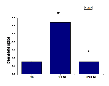 Dupa perioada de incubare cu TNF-a timp de 4ore sau 6 ore nu s-a produs detasarea celulelor de pe vasul de cultura, nu au aparut modificari morfologice ale celulelor endoteliale si nu a fost evidentiata o mortalitate crescuta. In concluzie, citokina (TNF-a) nu a fost toxica pentru celule.