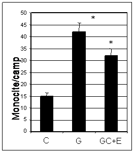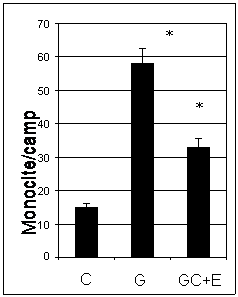 Pentru evaluarea adeziunii monocitelor la CE activate de TNFa si glucoza crescuta si urmarirea efectului aspirinei si clexanului asupra acesteia, CE activate au fost spalate cu mediu de cultura incalzit (37 C) si apoi incubate cu monocite (500 000/ml) suspendate in RPMI cu 1% ser fetal de vitel, timp de 30 minute la 37 C. Au urmat trei spalari cu acelasi mediu de cultura pentru a indeparta celulele neaderate, dupa care monostratul a fost fixat cu 2% paraformaldehida in 0.1 M tampon fosfat, 20 minute. Monostratul fixat a fost spalat de 3 ori cu PBS si examinat in contrast de faza la microscop. Numarul monocitelor aderate a fost cuantificat prin numarare directa a monocitelor in cinci campuri microscopice diferite (pentru fiecare conditie experimentala au existat probe duplicat sau triplicat). Datele morfometrice obtinute au fost exprimate ca numar de monocite aderate pe camp microscopic. Procesarea statistica s-a facut cu Anova din programul Origin.