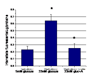 In cazul adeziunii monocitelor la EA 926, numarul monocitelor aderate la celulele crescute in 33mM glucoza a fost de 3 ori mai mare comparativ cu cele crescute in 5mM glucoza (Fig I.13).
