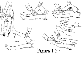 proba Barre (figura 1.41): bolnavul se afla in decubit ventral cu gambele flectate pe coapsa in unghi drept. In caz de sindrom piramidal membrul cu deficit oscileaza, apoi cade incet pe planul patului.