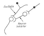 Inhibitia neuronala produsa prin hiperpolarizare sau prin alte mecanisme este tot atat de importanta ca si excitatia. Prin ea, raspunsul motor este modelat si coordonat, realizand o corespondenta intre activitatea muschilor antagonisti. S-au descris trei tipuri de inhibitie neuronala: directa, presinaptica si recurenta (fig. 6).