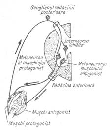 un neuron inhibitor intercalar care inhiba motoneuronii flexorilor (fig.