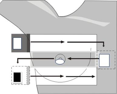 Sonda ecografica va fi mutata pas cu pas in sectiuni sagitale, cu 3 sau 4 pasi in sens orizontal, se va acoperi intreg sanul. Sonda trebuie tinuta perpendicular pe tegument.[3]