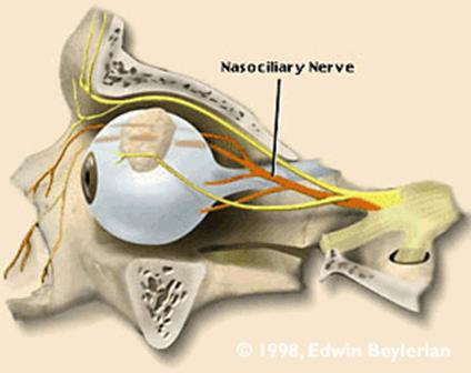 nervul frontal intern = nerv supraorbitar medial - ce paraseste orbita prin incizura prin incizura supraorbitara,