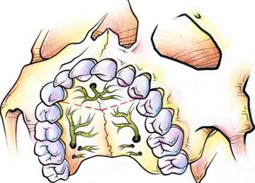 ramura anastomotica si pentru incisivul central de parte opusa.